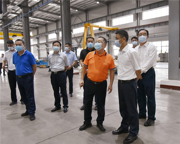 王市長一行先后走進(jìn)特裝生產(chǎn)車間、再制造及精沖機(jī)維修車間(A1車間),實地查看一線疫情防控和生產(chǎn)經(jīng)營情況,詢問了解公司發(fā)展?fàn)顩r,并在A1車間舉行座談,詳細(xì)聽取李總的工作匯報。