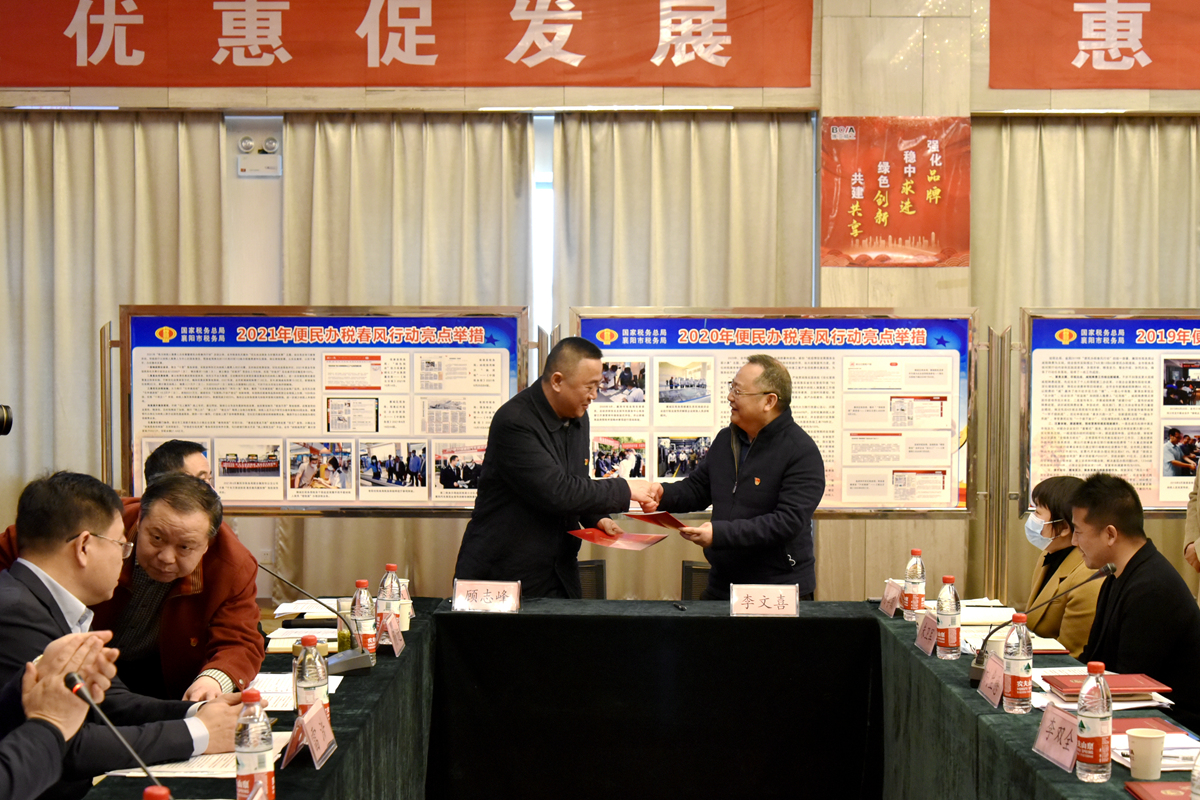 會(huì)上,市稅務(wù)局黨委書記、局長(zhǎng)雷浩首先致辭講話,隨后市稅務(wù)局黨委委員、副局長(zhǎng)張忠友解讀了2022年度“我為納稅人繳費(fèi)人辦實(shí)事暨便民辦稅春風(fēng)行動(dòng)”工作方案及具體措施,市稅務(wù)局納稅服務(wù)科科長(zhǎng)楊進(jìn)宣讀了襄陽(yáng)市稅務(wù)系統(tǒng)春風(fēng)行動(dòng)“十項(xiàng)承諾”;舉辦了稅企對(duì)接儀式,為10名“春風(fēng)行動(dòng)稅務(wù)體驗(yàn)師”和10名“專精特新”企業(yè)服務(wù)專員頒發(fā)了聘書;公司黨委書記李總和高新區(qū)稅務(wù)局黨委書記顧志峰共同簽訂了《稅企黨建結(jié)對(duì)共建協(xié)議書》,顧志峰書記還代表稅務(wù)部門作了表態(tài)發(fā)言;最后,舉辦了企業(yè)家代表座談,10名參會(huì)的企業(yè)家圍繞稅務(wù)部門服務(wù)質(zhì)效、便民辦稅春風(fēng)行動(dòng)和稅收宣傳月等工作建言獻(xiàn)策,提出了意見(jiàn)建議。